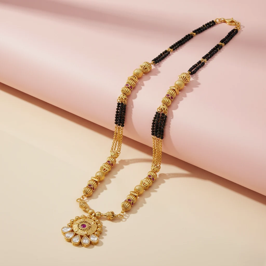 • Premium gold-plated imitation Mangalsutra with circular pendant