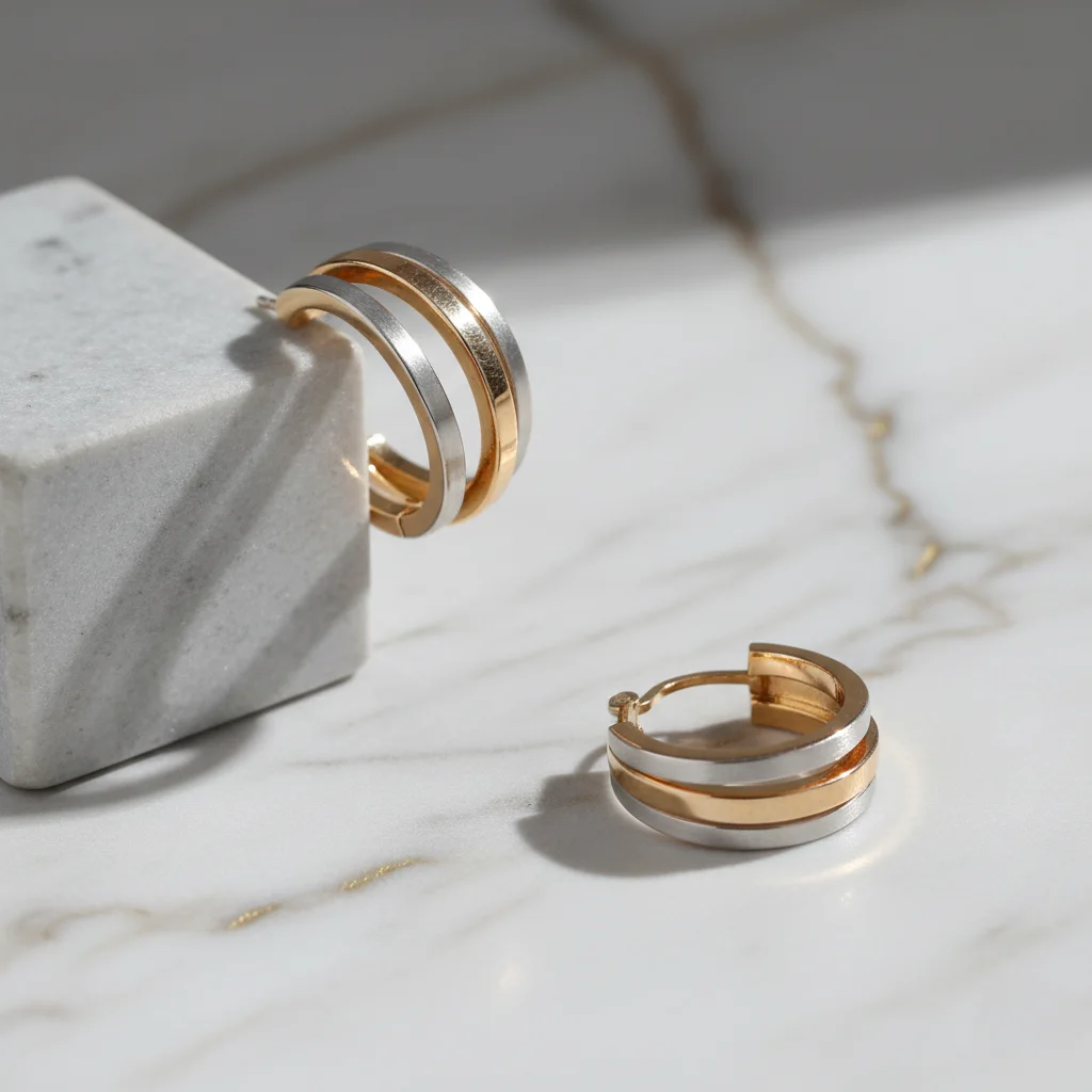 Elegant Dual-Tone Gold & Silver Hoop Earrings for Women