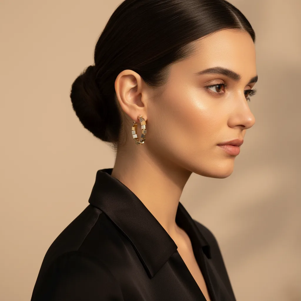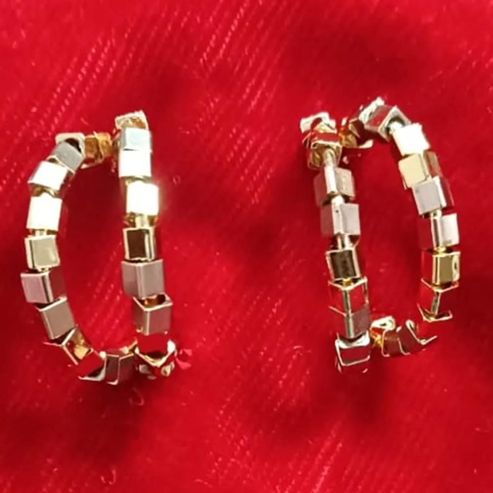 Enhance your style with these Dual-Tone Square Hoop Earrings from Swarali Fashion, beautifully crafted for women who love timeless elegance with a modern twist. The earrings feature alternating gold and silver cube-like segments arranged in a circular hoop design that sparkles gracefully under any light.