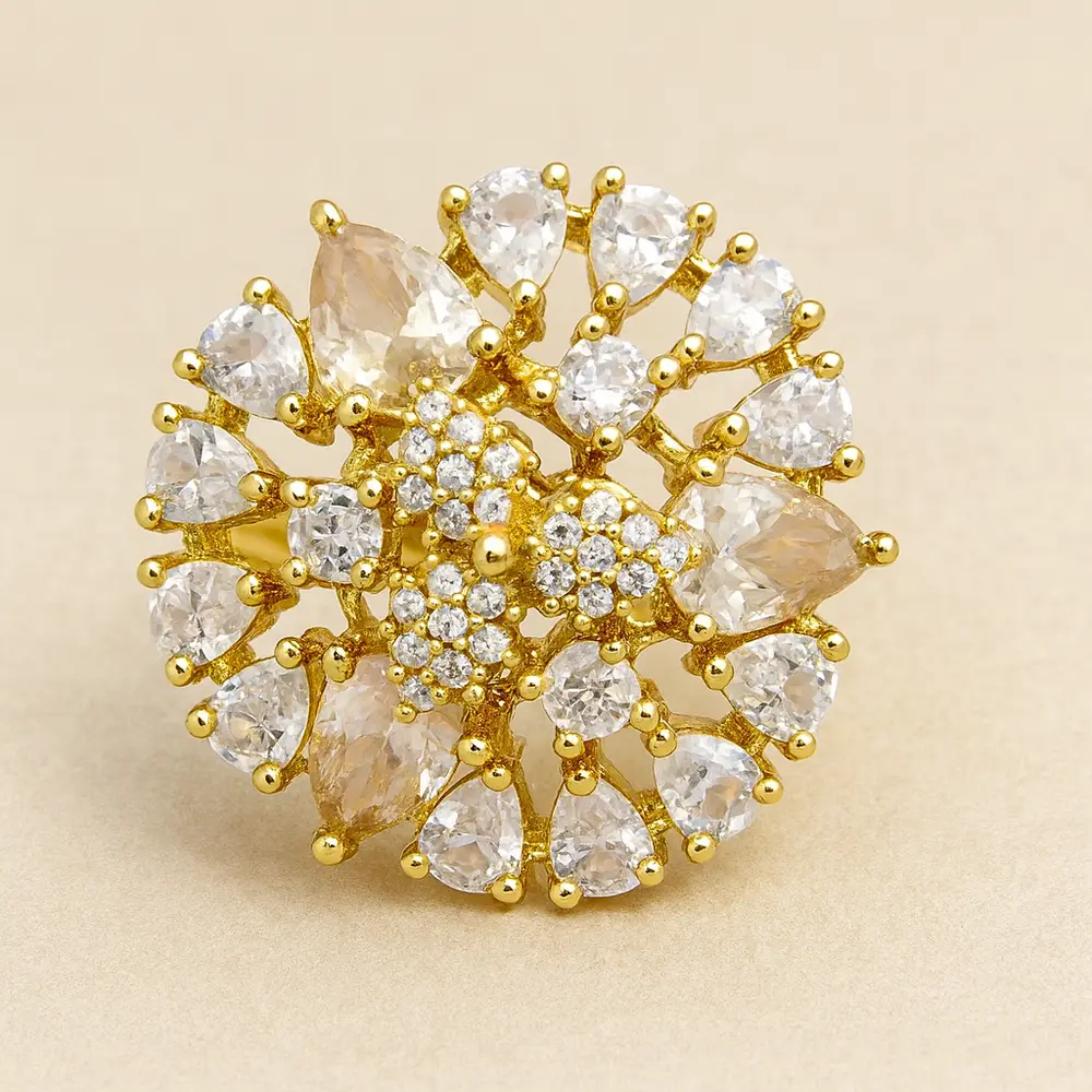 Embrace luxury and elegance with this Gold-Plated Floral Diamond Ring from Swarali Fashion, crafted to add a royal charm to your look.