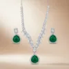 Add a royal charm to your festive and wedding looks with this elegant green and white diamond necklace set. Designed with precision and sparkling CZ stones, this imitation jewellery set from Swarali Fashion is perfect for parties, bridal wear, and special occasions