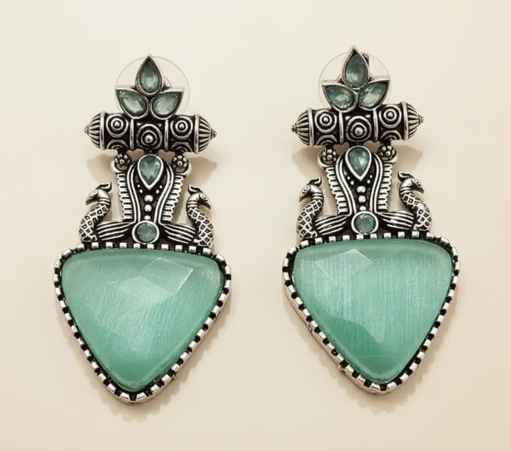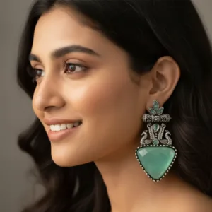 Be the first to review “Elegant Green Stone Oxidized Silver Earrings for Women”