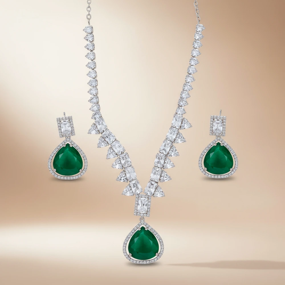 Emerald Green Diamond-Cut Imitation Necklace Set for Women