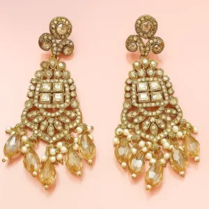 Golden Kundan Drop Earrings with Pearls & Stones
