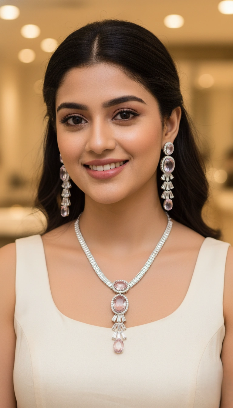 Perfect for weddings, parties, and festive celebrations, this lightweight and skin-friendly set adds a soft sparkle to any outfit. Whether paired with a saree, gown, or designer attire, it effortlessly elevates your appearance, making you stand out with charm and confidence.