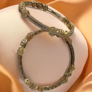 Perfect for traditional events, festive occasions, and weddings, these bangles pair beautifully with ethnic sarees, lehengas, and salwar suits. The smooth inner finish ensures a comfortable fit, while the high-quality plating offers a long-lasting shine. Flaunt your style with these timeless bangles that bring luxury within reach.