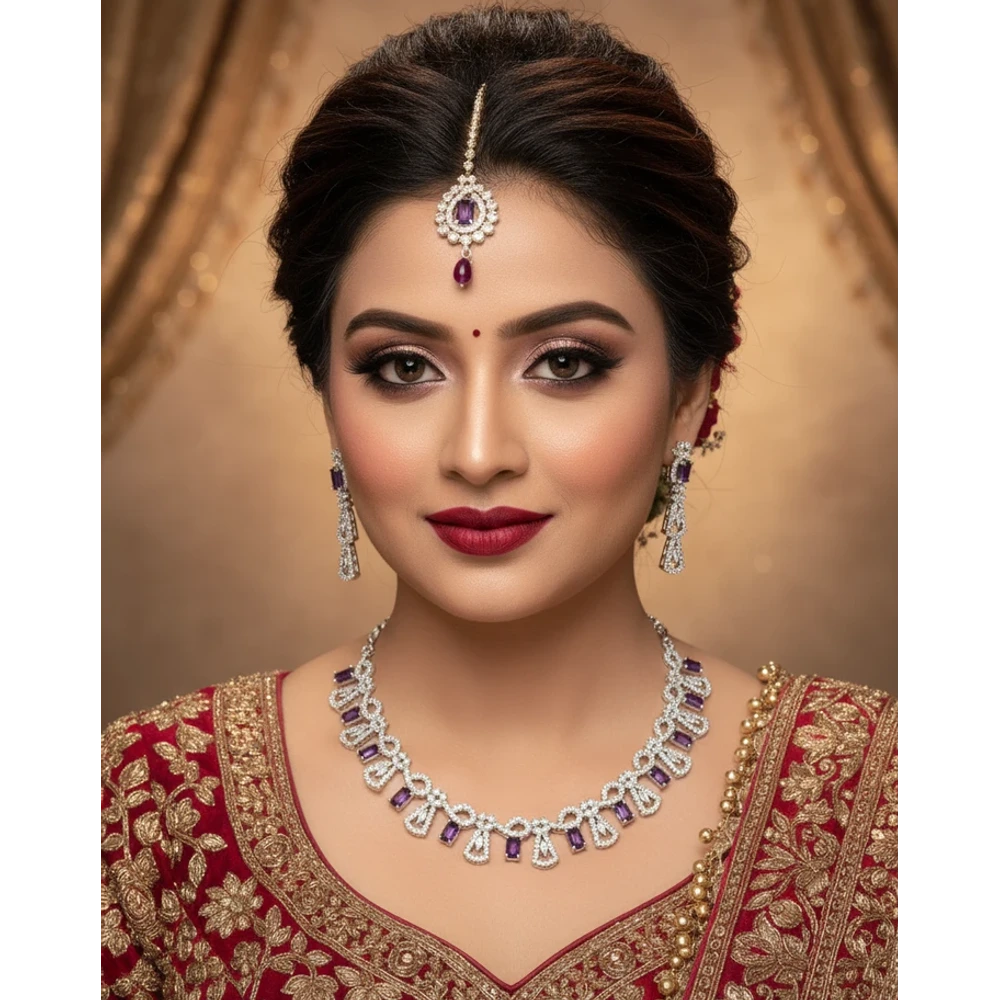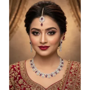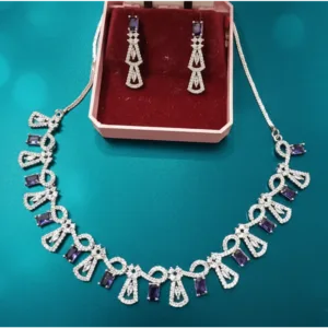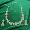 The matching earrings add a touch of grace and complete the ensemble, making it ideal for weddings, receptions, festive events, or elegant evening parties. Crafted with high-quality materials and a refined silver finish, it blends traditional artistry with modern design. Lightweight and comfortable, it’s a must-have for every jewellery lover.