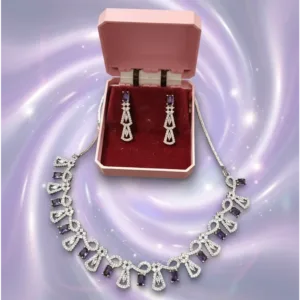 Purple Stone Diamond-Cut Necklace Set with Earrings