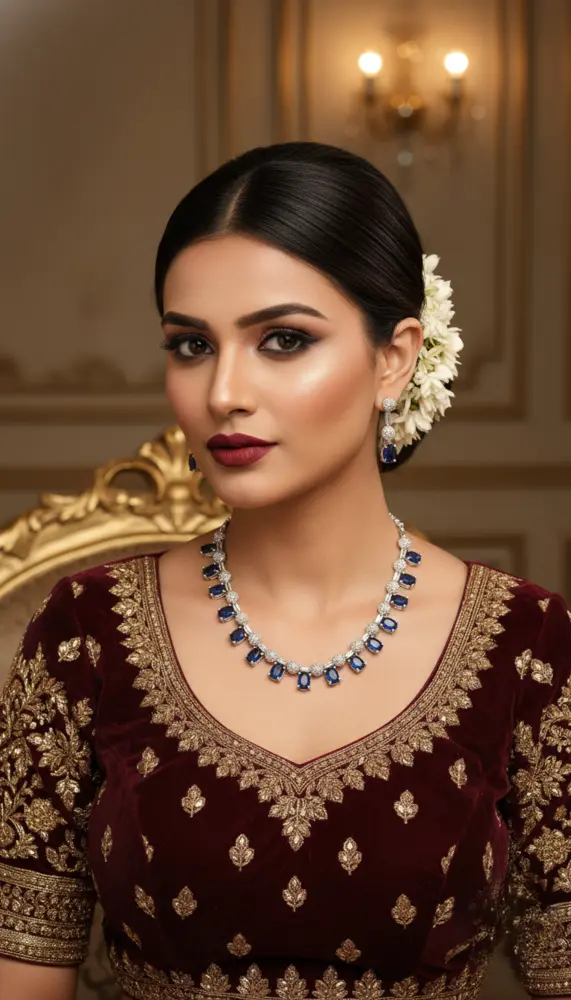 Add a touch of royalty to your look with this blue sapphire diamond necklace set from Swarali Fashion. Featuring brilliant blue stones and elegant earrings, it’s perfect for weddings, parties, and festive occasions.