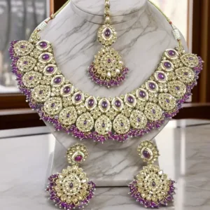 Be the first to review “Royal Purple Kundan Bridal Necklace Set with Earrings & Maang Tikka”