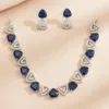 Stylish Rose Gold Plated Triangle Necklace Set with Blue Stones