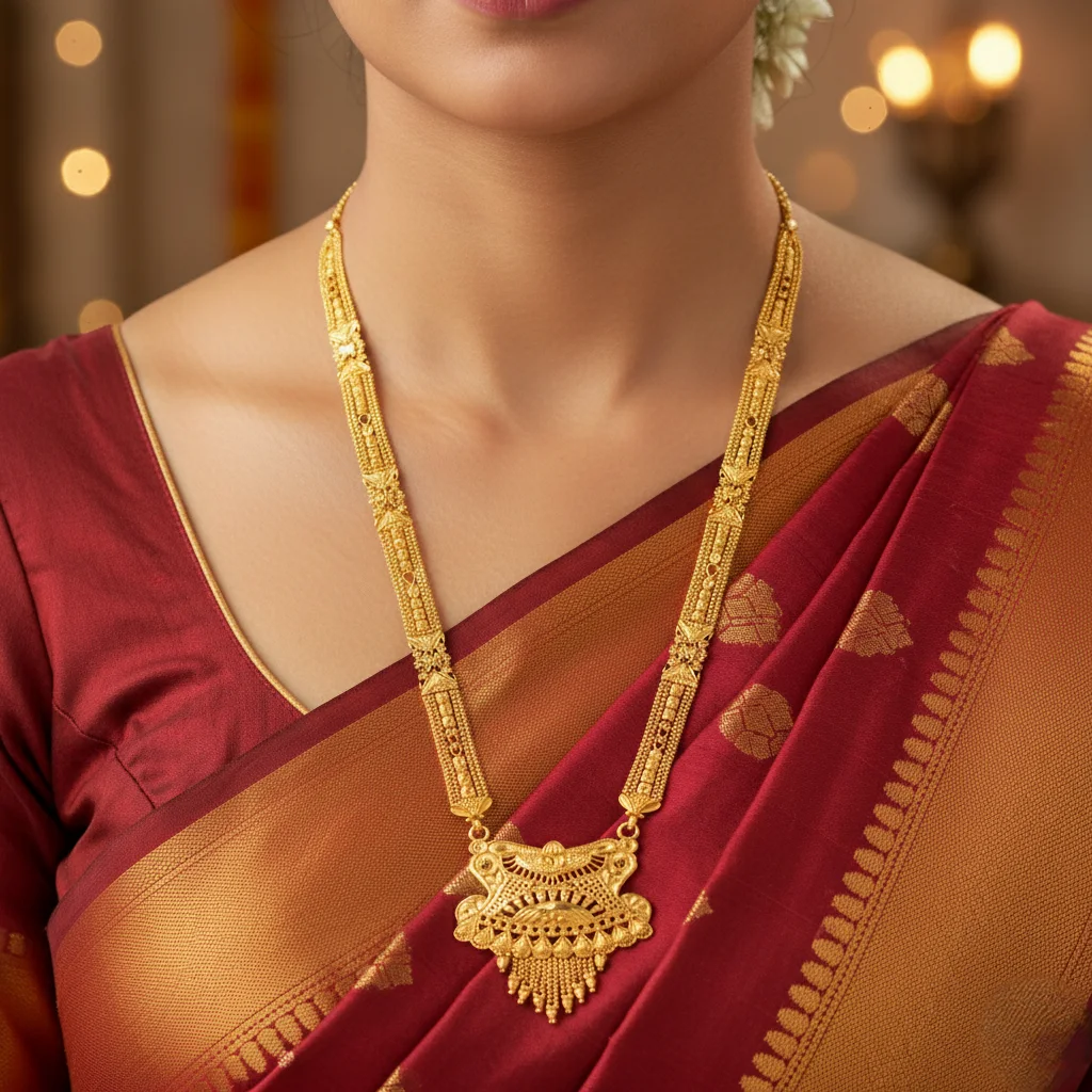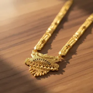 The intricate carvings and lightweight feel make it a must-have addition to every woman’s jewellery collection — symbolizing beauty, devotion, and timeless tradition.
